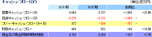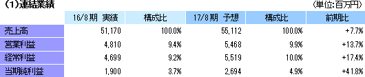 配当は1株当たり上期末16円、期末16円の年32円を予定している。また、株主優待として、2016年8月31日現在の株主名簿に記載または記録された100株以上の株式を保有している株主に一律5,000円相当の株主優待券と所有株式数に応じたカタログギフトを贈呈する。カタログギフトについては、100株以上保有の株主に3,000円相当のカタログギフトを、1,000株以上保有の株主に5,000円相当のカタログギフトを、それぞれ贈呈している。