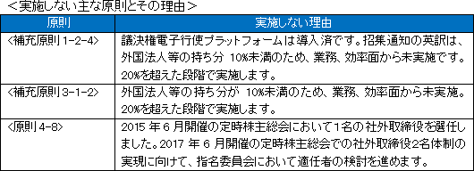 同社は最新のコーポレートガバナンス報告書を2016年7月28日に提出している。