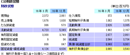 売上高は、前年同期比8.9%増の47億59百万円。売上面では、工業用ゴム事業の売上高が同7.6%増加。自動車内装照明向けのシリコーンゴムキャップ付きLED「ASA COLOR LED」の受注が海外向けを中心に好調に推移した他、卓球ラケット用ラバー及び、RFIDタグ用ゴム製品の受注が増加した。また、医療・衛生用ゴム事業の売上高も同14.7%増加。プレフィルドシリンジ用ガスケット及び採血用・薬液混注用ゴム栓の販売が堅調に推移した。営業利益は、前年同期比193.5%増の3億55百万円。工業用ゴム事業のセグメント利益は、同79.7%の増益となった。加えて、医療・衛生用ゴム事業のセグメント利益も同132.2%増加した。販売の増加、原価低減活動の継続が寄与し、売上総利益率は、27.1%と前年同期比3.5ポイント上昇。また、売上高対販管費率も同1.2ポイント低下した。その他、為替差益(19百万円)が発生したことなどもあり、経常利益の増益率は営業利益の増益率を上回った。その他、固定資産圧縮損を中心に特別損失(24百万円)が発生したものの、補助金収入による特別利益(16百万)が発生した。 ![]() ※15/3Qと4Qは、取締役2名逝去による役員退職慰労引当金繰入額等の特殊要因が影響。 ![]() ![]() ![]() |