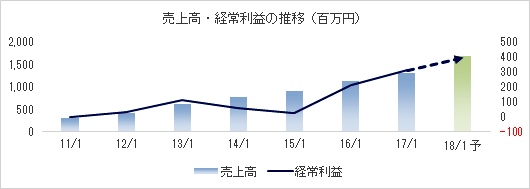 売上高は前期比16.1%増の13億32百万円。収益性重視の観点から効率化に取り組んでいる書籍他の売上が減少したものの、主力のWebサービスの売上が同27%増と大きく伸びた。Webサービスでは、お墓事業が同26%増、葬祭事業が同30%増、仏壇事業が同26%増、と全ての事業で売上が高い伸びを示した。営業利益は同45.1%増の3億27百万円。売上の増加と継続的な原価の見直しによる書籍他の原価低減で売上総利益が同28.3%増加(売上総利益率が5.7ポイント改善)。人件費、広告宣伝費、及び業務委託費の増加や、本社移転(2016年10月)費用等による販管費の増加を吸収した。IPO関連費用(2015年12月に東証マザーズに上場)がなくなり、営業外損益も改善した。 ![]() ![]() ![]() ![]() ![]() ![]() ![]() *ROE(自己資本利益率)は「売上高当期純利益率(当期純利益÷売上高)」、「総資産回転率(売上高÷総資産)」、「レバレッジ(総資産÷自己資本、自己資本比率の逆数)」の3要素を掛け合わせたものとなる。ROE = 売上高当期純利益率 × 総資産回転率 × レバレッジ
