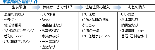 1984年4月、仏壇仏具業界向け書籍の出版を目的に設立されたが、清水祐孝氏の代表取締役就任を機に、「本を買う人は、紙の印刷物が欲しいのではなく、そこに書かれている情報を求めている」との考えの下、「自分たちの提供する価値は“情報”である」と改めて定義。情報加工業という視点から、事業領域を「インターネットビジネスを含めた情報ビジネス」として、2000年10月に全国の葬儀社や葬儀マナー等に関する情報サイト「いい葬儀」を開始した。