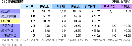 | 2017年1月期決算 |