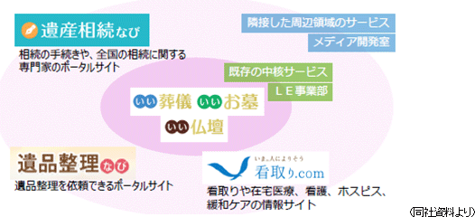 供養業界の事業者に向けたビジネス情報誌である月間「仏事」(年間購読料:税込み16,200円)等、葬儀や墓・仏壇等、供養に関連する様々な出版物を発行している。出版社としての知名度や信頼感、業界ネットワーク、コンテンツ生成力がインターネットサービスにも活かされている。売上や利益では測れない、シナジーを有する事業である。