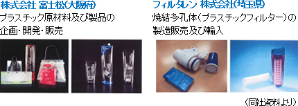 旭化成グループ スチレン系樹脂原料 : 冷蔵庫、エアコン等東洋インキグループ コンパウンド : OA・事務機器 帝人グループ エンジニア系樹脂原料 : カメラ・プリンター外装 この他、双日グループ、JNCグループ、三井化学グループ、出光興産グループ等からの仕入も多い。 【コアコンピタンス】