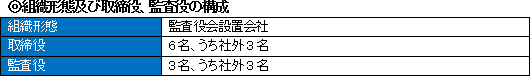 当社グループでは、事業活動を通じて利益を上げ、中長期的に株主価値を増大させるという株主の期待に応えることが、企業経営の基本使命であると考えています。また、株主を含むすべてのステークホルダーに対する責任を果たし、社会規範に沿った事業活動を行うとともに、社会に貢献するという考えに立ち、コーポレートガバナンスの向上を目指しております。当社では、コーポレートガバナンスの要件の一つである「透明性と説明責任」の確保のために、6名の取締役の内3名は社外取締役とするとともに、その独立性を確保しております。 監査役会は常勤監査役1名、非常勤監査役2名の合計3名で構成され、3名全員が社外監査役であります。これにより経営に対する透明性を確保し、監視・監査機能を果たすとともに、社外監査役は、独立性を確保しております。また、社外監査役3名のうち2名は株式会社東京証券取引所に対し、独立役員として届け出ております。このほか社長直属の内部監査チームを設け、業務が適切に運営されているか内部監査を実施するとともにグループ会社の監査も実施しております。 コンプライアンスの徹底とリスクマネージメントはコーポレートガバナンスの強化の重要な要素と捉え、当社グループの全役職員が法令の遵守と規範に基づき行動することを徹底しております。そのために「行動規範」、「コンプライアンスマニュアル」を制定しグループ全体で徹底を図っております。 |