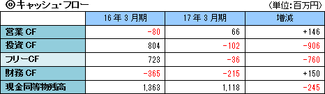 減収営業損失地盤改良工事、コンクリート補修補強工事及び環境改善工事ともに工事案件が少ない中、地盤改良工事及びコンクリート補修補強工事に使用される材料・添加剤等の販売が一部伸びたが全体では受注が減少傾向。 環境関連薬剤も低調だった。 ![]() 長短借入金残高合計は減少したが仕入債務の増加で負債合計は同80百万円増加の77億1百万円。 利益剰余金の増加で純資産は同3億67百万円の増加。 この結果自己資本比率は前期末より1.2ポイント上昇し、45.0%となった。 ![]() 有形固定資産の売却による収入が無くなり、投資CF、フリーCFはマイナスに転じた。 前期減少した短期借入金の増加や株式公開費用が無くなったことで財務CFのマイナス幅は縮小。 キャッシュポジションは低下した。 |