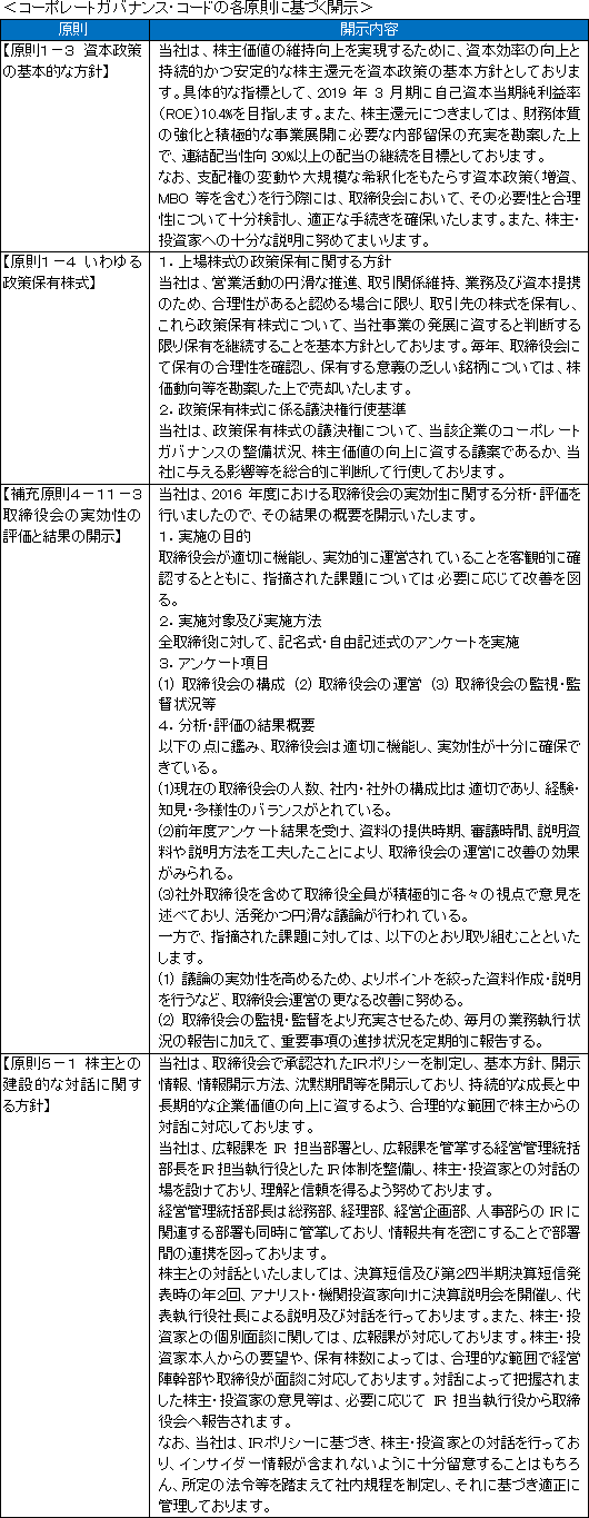 同社は最新のコーポレートガバナンス報告書を2016年6月23日に提出している。<実施しない主な原則とその理由> 同社はコーポレートガバナンス・コードの各原則を実施している。 ![]() |