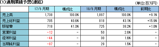 売上高は前期比6.6%増の17億38百万円。取扱高は堅調に増加しシステム利用料売上は好調だったが、前期に2億円超あったシステム開発案件が減少したため1桁増収にとどまった。ハウスプリペイド事業において下期中に計上見込みであった案件が翌期以降にずれ込んだことやシステム刷新の長期化に伴う営業進捗の遅延等による売上減に加え、営業・管理部門の増員、システム刷新の外注費増加など原価および販管費が大きく増加し、営業利益は12百万円の損失となった。期初予想には未達だったが、修正予想は上回った。なお、システム刷新の長期化については、想定を上回る取扱高の増加ペースへの対応や、及び大型案件の獲得ペースアップの為、協業先との提携強化を図ったことが理由となっている。