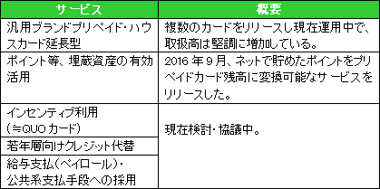 プリペイドによる決済には以下のような種類がある。同社の「バリューカードASPサービス」はサーバー管理型プリペイドカードシステムにあたる。 ![]() 一般社団法人日本資金決済業協会の調査によれば、前払式支払手段(プリペイド)の媒体別年間発行額合計は、平成27年度 21.5兆円で、過去5年間の成長率は年率4.2%。媒体別には発行額が最多だったのはIC型だが、磁気型や紙型が減少傾向にあるのに対し、最も伸長したのはサーバー型だった。 上記のようなサーバー管理型電子マネーのメリットを発行者が評価した結果と言えるだろう。 企業が費用対効果を追求する姿勢をますます強める中、顧客囲い込みのための有力な手段としてサーバー管理型電子マネーを用いたプリペイドカード需要は今後も引き続き増大していくものと思われる。 ![]() ◎同業他社