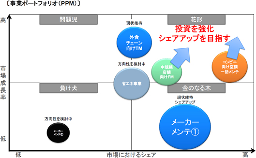 後述するように、空調、冷暖房、厨房などの各種機器を用いる飲食店、小売店においてはデフレ環境下、売上の大幅増が期待しがたい中で、競争を勝ち抜くためにはコスト管理が最重要ポイントとなる。特にチェーン店化を進めている場合、各機器を全国規模・同一基準で管理することによるトータルコストの削減へのニーズが強い。 同社ではトータルメンテナンス事業の市場規模を約3兆円(※)と推定しており、この巨大市場の開拓を積極的に推進していく考えだ。 ※主要顧客3業態(飲食、流通、娯楽関連)の全国チェーン売上高の3%をメンテナンスコストと仮定
