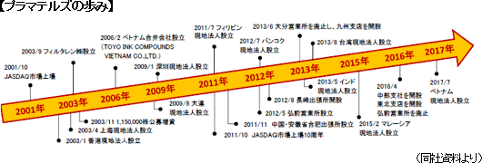 インド・東南アジアを中心とした世界的な人口の増加及び生活水準の向上による消費の拡大で、消費材・耐久消費材の素材である合成樹脂の市場も拡大傾向にあり、実際、同社の重要顧客企業も生産拠点をアジア全体に拡大している。こうした需要顧客企業の動きに対応して、同社は海外拠点整備の重点エリアを中国だけなく、アジアに広げ、変化する顧客ニーズを確実に捉える体制の構築と各拠点の強化に努めている。更にアセアン経済共同体発足の機運に合わせ、2017年7月にベトナム・ホーチミン市に100%出資の現地法人を設立し、日本国内及びベトナムを中心としたアセアン地域でのビジネス展開の連携強化を図る。