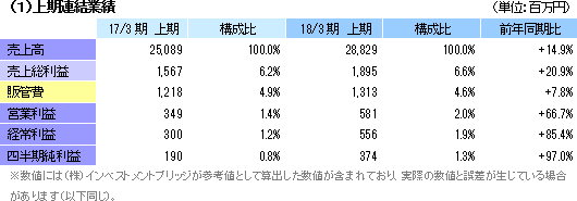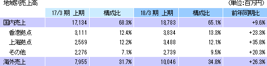 | 2018年3月期上期決算 |