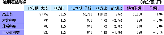 | 2018年3月期業績予想 |