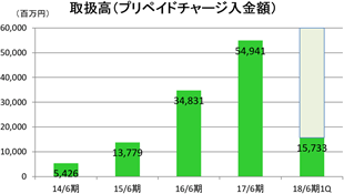 ![]() ブランドプリペイドカードとは、VISA、MasterCardを始めとする国際ブランドと提携し、従来のハウスプリペイドカードの機能にVISA、MasterCard等の国際ブランド加盟店での決済機能を搭載したカードのこと。 通常のクレジットカードとは異なり、前払でカードに入金した金額に制限されるために使い過ぎる心配がなく、入会審査は不要なため、誰でもクレジットカード加盟店であればどこでも利用できる簡便性を兼ね備えている。 また、ハウスプリペイドカードは導入店舗及び系列店舗に利用が限定されるが、ブランドプリペイドカードは、VISAブランド、MasterCardブランド等に加盟している世界中の店舗で利用することができる点も大きな違いである。 ![]() 18年6月期は600億円程度まで伸長すると会社側は予想している。 ![]() (収益構造)