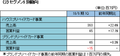 増収損失幅拡大。既存イシュア(カード発行会社)の提携先における取引高及びそれに伴うシステム利用料収入が堅調に増加している。取扱高は前年同期比25.6%増の157億円となった。複数の新規案件のサービス稼働準備を進めている。 ![]() |