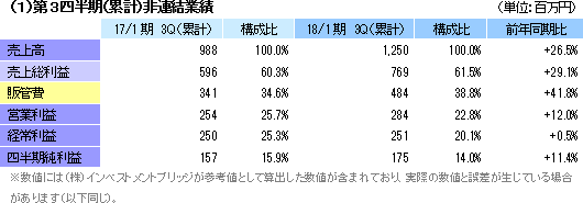 | 2018年1月期第3四半期決算 |