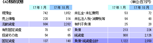第3四半期終了時点で社内計画を上回る進捗だが、今後の採用計画、新規事業への投資等を鑑み、期初予想を据え置いた。配当は未定だが、2017年7月の東証1部への市場変更を踏まえて前向きに検討している模様。通期予想に対する進捗率は、売上高74%、営業利益68%、経常利益63%、当期純利益69%。 ![]() ![]() |