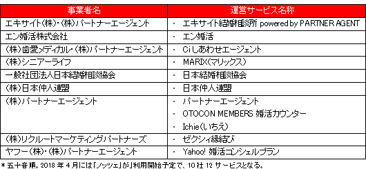 2018年4月より。株式会社結婚情報センター(東京都新宿区)が運営する婚活支援サービス「ノッツェ」が、コネクトシップの利用を開始することとなった。これでコネクトシップの利用は10社12サービスとなる。