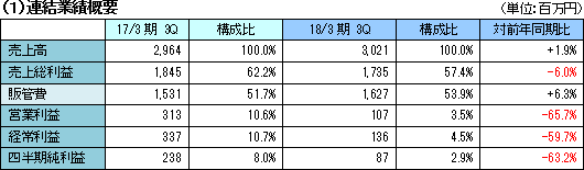 売上高は前年同期比1.9%増の30億21百万円。主力のパートナーエージェント事業が新規入会会員数の鈍化により減収となったが、好調のファスト婚活事業が補い、増収となった。ただ、粗利、粗利率ともに前年同期を下回る一方、中長期的な成長に向けた人件費、新規出店に伴う家賃などの諸経費を含めた販管費が6.3%増加したことにより、売上の増加分を吸収しきれず、営業利益は65.7%の減益となった。
