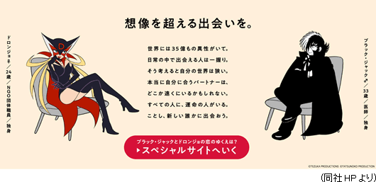 同社は中長期の対策として認知度向上を図るべく、2018年1月に広告クリエイティブの変更を行った。<コンセプトは「想像を超える出会い」> 「結婚しにくい時代」である現代、日常生活の中で出会える異性はほんの一握りであり、婚活支援サービスを提供する同社の役割は、日常では起こりえなかった想像を超える出会いを提供することにある。 このようなコンセプトを分かり易く伝えるために、通常では出会わないはずの2人のキャラクターを登場させ、新たな広告クリエイティブを展開した。 ![]() ◎「ノッツェ」によるコネクトシップ利用がスタート