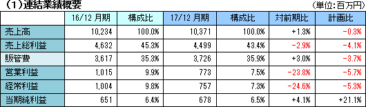 前期比1.2%減収。海外販売は堅調だったが価格改定などの影響により国内OEM販売が低調だった。 ◎消耗品