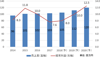 「持続的な成長に向けた体制づくり」をテーマに掲げ、直近3期の売上高はほぼ横ばいで、経常利益は2015年12月期にピークを付けた後、減少傾向となっていることを踏まえ「増収増益基調への転換・経常利益のV字回復」を目指す。 <数値目標> 2020年12月期、「売上高120億円以上、売上高経常利益率10%以上、海外直接売上高比率10%以上」を挙げている。 ![]() ![]() ![]() |