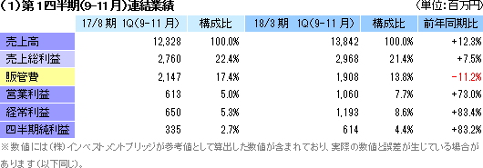 | 2018年8月期第1四半期決算 |