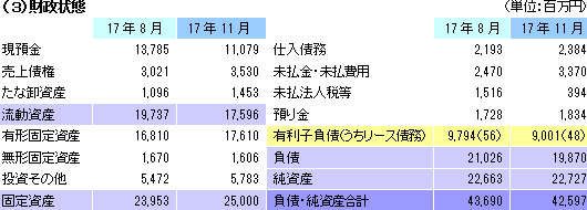 売上高は前年同期比12.3%増の138億42百万円。会員の増加とリニューアルしたプロテイン販売の好調でカーブス事業の売上が同19.8%増と伸びる中、店舗数の増加でカラオケ事業の売上も同6.7%増加した。利益面では、増収によるカーブス事業の利益の増加に加え、資本装備率の向上や新規出店が前期よりも少なかった事によるカラオケ事業の損失減少で営業利益が10億60百万円と同73.0%増加。為替差益の増加(9百万円→64百万円)等で営業外収益も増加した。 ![]() ![]() カラオケ事業