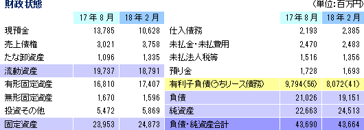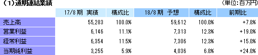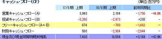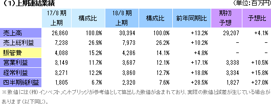 | 2018年8月期上期決算 |