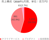 売上は、グループウェアや関連製品をインターネット経由で提供する「クラウドサービス」、グループウェアや関連製品のライセンス販売を行う「プロダクト」、ソフトウェアの受託開発を行う「技術開発」の3分野に区分される。