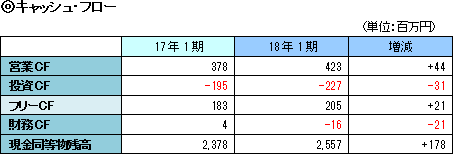 無形固定資産の取得による支出増で投資CFのマイナス幅は拡大したが、フリーCFはプラスを維持。