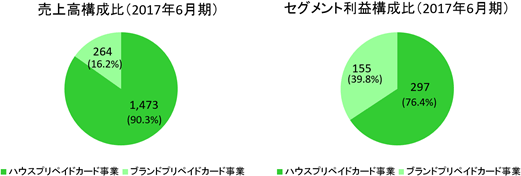 2016年6月期から開始した事業。ブランドプリペイドカードとは、VISA、MasterCardを始めとする国際ブランドと提携し、従来のハウスプリペイドカードの機能にVISA、MasterCard等の国際ブランド加盟店での決済機能を搭載したカードのこと。 通常のクレジットカードとは異なり、前払でカードに入金した金額に制限されるために使い過ぎる心配がなく、入会審査は不要なため、誰でもクレジットカード加盟店であればどこでも利用できる簡便性を兼ね備えている。 また、ハウスプリペイドカードは導入店舗及び系列店舗に利用が限定されるが、ブランドプリペイドカードは、VISAブランド、MasterCardブランド等に加盟している世界中の店舗で利用することができる点も大きな違いである。 ![]() 18年6月期は600億円程度まで伸長すると会社側は予想している。 ![]() (収益構造)