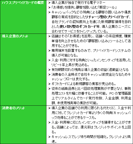 ハウスプリペイドカード事業では国内シェア40%超を有しており業界首位である。豊富な導入事例とノウハウで他社に対して大きなアドバンテージを持っている。(詳細は、「1-5 特長と強み」を参照) ![]() 【1-4 事業内容】