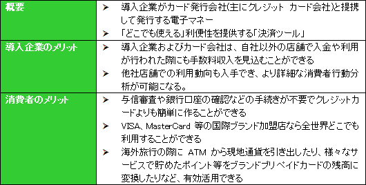 自社の独自ブランドで発行が可能な「ハウスプリペイドカード」と、VISA、MasterCardを始めとする国際ブランドと提携し、従来のハウスプリペイドカードの機能にVISA、MasterCard等の国際ブランド加盟店での決済機能を搭載した「ブランドプリペイドカード」を展開しており、この2つを事業セグメントとしている。