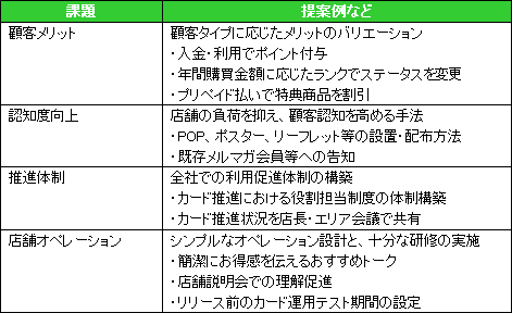 プリペイドカードサービス成功の鍵はシステムではなく利用を促進するノウハウであると同社では考えている。この点で、10年間で蓄積した豊富な導入事例は大きなアドバンテージとなっている。 様々な業種からなる600社を超す導入実績から具体的な事例を用いて個社ごとの最適な手法を提案することができる点は他社にはない強力な差別化要因であり、現在までのさらに将来に向けての同社成長の源泉でもある。 ![]() ②専門のコンサル部門による導入・運用支援