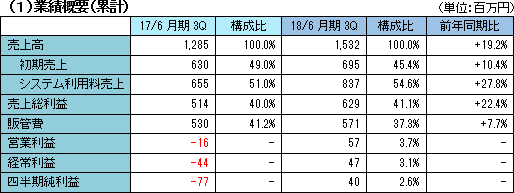 ![]() 初期売上、システム利用料売上ともに増加し増収増益