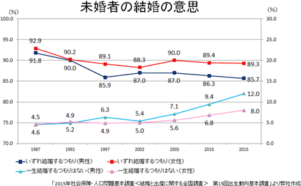 *上昇続ける未婚率 ![]() *未婚者の結婚の意思 ~「結婚する意思」は引き続き高水準~