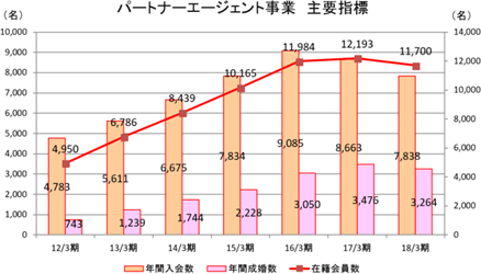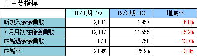 売上高は前年同期比6.1%増の10億62百万円。主力のパートナーエージェント事業は前年同期並み、OTOCONパーティー参加者が引き続き増加しているファスト婚活事業は好調だった。前期の新規出店に伴う人件費・賃料増加、システム開発に伴う減価償却費増加により原価が増加し、売上総利益は減少したが、人件費および効率を重視した広告運用による広告費の減少等により販管費が減少したため、営業利益は同160.6%増の24百万円となった。 保育事業譲渡に伴う一時的な敷金礼金償却費用が発生したため経常利益は減益となった。 ![]() (パートナーエージェント事業)