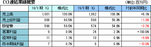 | 2019年3月期第1四半期決算概要 |