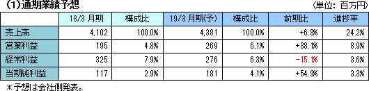 | 2019年3月期業績予想 |