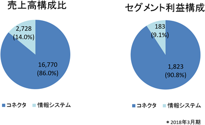 事業セグメントはコネクタ事業と情報システム事業の2つ。