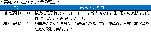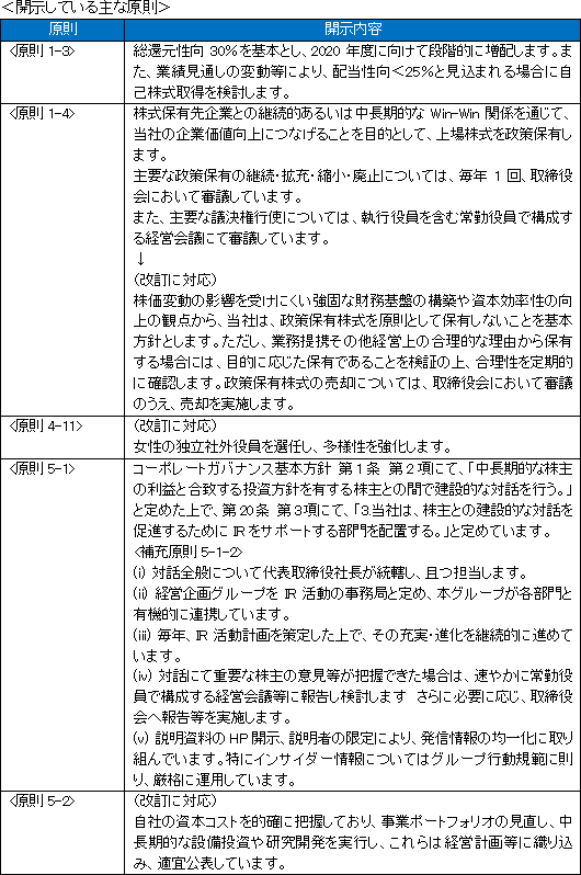 金融庁と東京証券取引所により策定された「コーポレートガバナンス・コード」が2015年6月1日から適用されるのに先立ち、2015年5月22日、「コーポレートガバナンス基本方針」を公表した。