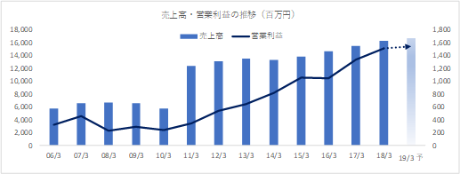 18/3期は売上高・利益共に期初予想を上回り、過去最高を更新しました。