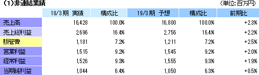 | 2019年3月期業績予想 |