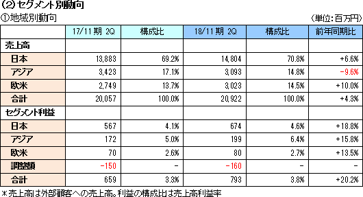 報告セグメントは、日本、アジア、欧米の3セグメント。