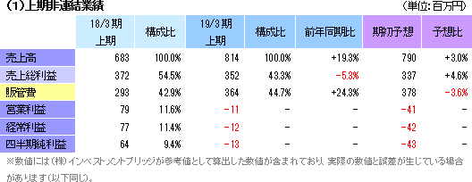 | 2019年3月期上期決算 |