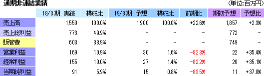 | 2019年3月期業績予想 |