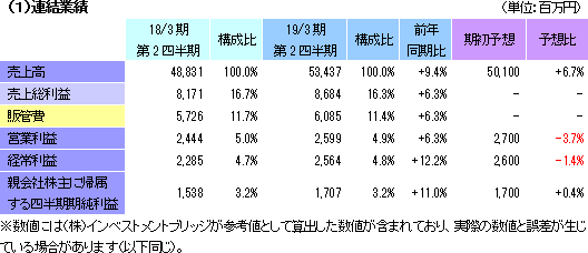 | 2019年3月期第2四半期決算 |