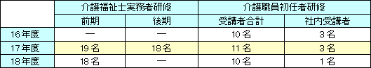 組織を運営していける人材の育成を目的とした研修・試験を実施している。役職取得に向けて、主任試験、副主任試験、リーダー試験、サブリーダー試験といった社内試験を実施し社内役職者を強化している。役職者数は17年4月1日107名から18年4月1日には190名に増加している。 また、介護職員初任者研修、介護職員実務者研修、介護福祉士試験対策講習、介護支援専門員試験対策講習、健康運動指導士といったスキルアップ研修も実施している。 ![]() |