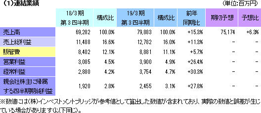 19/3期第3四半期連結累計期間の実績と通期会社予想の進捗状況
